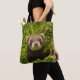 Saco de tote com uma fotografia adorável, com um pequeno furão marrom em pé em um capim longo. Que bom!