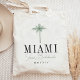 Dê as boas-vindas aos amigos no fim de semana de despedida de solteira com essas bolsas de mão personalizadas. Perfeitas para locais praianos ou tropicais, este design apresenta uma ilustração da silhueta de uma palmeira verde com o destino abaixo (mostrado com Miami) em letras serifadas clássicas. Adicione seu(s) nome(s) ou o nome da ocasião abaixo em letra cursiva manuscrita, bem como o ano.