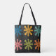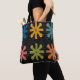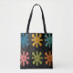 Esta bolsa de tote tem uma design moderna do século Médio de estrelas em cores retrógradas em um campo de preto.