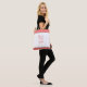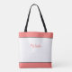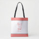 Adicione um nome para personalizar esta bolsa de tote única para um belo presente para a mulher cristã. Personalize o chic, mala feminina com um nome na parte de trás. Personalize este presente de script de Bíblia com seu próprio texto, se desejar. "Fique quieto e saiba que sou Deus", é um verso Bíblia cristão de Salmos 46:10. Reze e medite sobre a presença de Deus e sua calma. É um presente de fé cristã excelente para a mãe cristã, irmã espiritual ou amiga estudante de bíblias da igreja. A tipografia de pêssego rosa-coral é acentuada com uma faixa sólida rosa no topo e no fundo, com uma borda de preto para um toque feminino elegante.