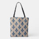 Bolsa Tote Fleur de Lis Pattern, Royal French Blue em Creme