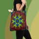 Bolsa Tote Flor Verde Azul e Vermelho, Flor Mandala Psicodéli