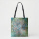 Bolsa Tote Flor verde brilhante e azul na textura da garoa de