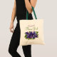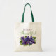 Esta bolsa é desenhada com um conjunto roxo de flores, as palavras "Flor Girl", e um nome personalizado em cima! Faz um presente de excelente para a sua florista ou qualquer outro membro da sua festa de noiva. Arte floral criada e pintada por mim.