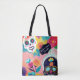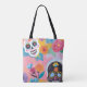 Floral Dia De Los Muertos Tote Bag. Traga um toque vibrante da cultura mexicana para sua casa com esta pintura colorida do crânio de açúcar em uma bolsa de Tote. Com detalhes complexos e uma paleta festiva, esta trabalho de arte é perfeita para adicionar um elemento único e alegre ao seu espaço. Celebrar a vida e a beleza da tradição com esta peça atordoante. Faz um presente excelente para a família e amigos também. Personalize com seu próprio texto.