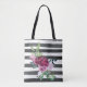 Bolsa Tote Floral Listrado Preto e Branco