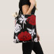Bolsa Tote Flores brancas e vermelhas a preto.