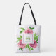 Bolsa Tote Flores de Monograma em Aquarela Rosa Personalizada