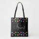 Flores cardíacas multicoloridas modernas sobre fundo preto Tote Bag. O texto espirituoso pode ser personalizado.