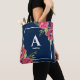 Bolsa Tote Flores Vermelhas e Rosa Monograma Azul Marinho Esc