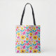 Uma bolsa tote adornada com flores ousadas e coloridas em tons quentes de amarelo, rosa, vermelho e azul-teal, trazendo charme alegre e moderno para tarefas cotidianas, compras e passeios casuais. Um acessório elegante e pronto para presente para os amantes de estampas florais brilhantes e design inspirador