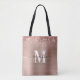 Crie sua própria bolsa de compras de monograma, personalizada por uma dama de honra. Rosa dourado e cinza cor-de-rosa gradiente de cor verde e gráfico digital brilhante. Monograma contemporâneo preto-e-branco com design de caligrafia elegante estilo assinatura. Você pode personalizar e alterar o estilo ou a cor da fonte conforme preferir. Todos os efeitos brilhantes e brilhantes do cetim vão ser impressão como uma foto no seu presente.