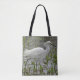 Esta bolsa de tote não só ajuda você a ser amigável com o meio ambiente, como também permite que você leve uma dica da natureza com você, conforme você compra. Esta bolsa de compra mostra uma foto de um furo branco caminhando pela água entre a folhagem verde brilhante. O pescoço longo e as pernas do ladrão ajudam este pássaro a capturar pequenos peixes e sapos na água. Ambos os lados da bolsa de tote apresentam a mesma fotografia.