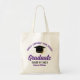 Essa bolsa de tote de formando mais velho roxo e preto personalizado apresenta seu nome de segundo grau ou faculdade para a classe de 2023. Personalize com o seu ano de graduação com o script manuscrito chic e o boné formando preto para um presente personalizado de festa de formatura de excelente.