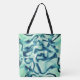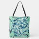 Bolsa Tote Formas azuis esverdeadas curvas, tons cianos de ex