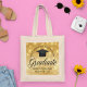 Elegante bolsa tote de brilho dourado falso com presente de formatura 2023 para o ensino médio ou festa de formatura universitária com o nome da sua turma e da sua turma no centro. Personalize esse lindo presente para cada aluno.