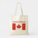 Este é um saco de tote vermelho e branco acentuado com a bandeira canadense que diz Canada Strong. É uma forma excelente para qualquer um mostrar apoio ao Canadá!