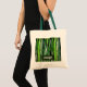 Um saco de tote com um tema asiático. Uma fotografia de uma fileira de caules verdes e amarelados de bambu.