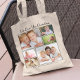 A vovó vai adorar esta mala personalizada de colagem de fotos. Você pode personalizar com seis fotos familiares de netos, familiares, animais de estimação, etc, e personalizar a expressão para "Eu te amo" ou "Nós te amamos", e se ela é chamada de "vovó", "vovó", "mãe", etc. Você também pode adicionar os nomes dos netos ou netos.