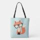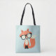 A ilustração adorável do vetor de uma raposa vermelha bonito que veste um par desproporcionado de vidros de leitura em uma hortelã esverdeia o fundo. Adicione um nome ou um monograma para um presente um--um-amável.