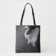 Uma bolsa tote com uma garça branca em um estilo monocromático suave em um fundo escuro. Limpa, elegante e fácil de carregar, este design funciona bem para uso diário, recados, livros e moda inspirada na natureza.