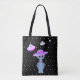 Saco único com um gato giro de chapéu e discos voadores apenas no lado frontal em fundo preto estrelado. O gato celestial está de cor azul clara vestindo um chapéu violeta.