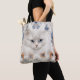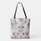 BOLSA TOTE GATO BRANCO FLUFFY COM FLORES AZUIS E LARANJAS