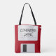 Geek retro engraçado do computador por todo o lado na sacola com imagem de uma disquete velha do computador em uma reminiscência aos dias de computadores mais simples. Substitua o geek do computador de palavras com sua própria mensagem se você quer personalizar este em linha. Uma grande sacola da novidade do presente da mordaça.