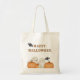 Saco do Dia das Bruxas Festivo com um morcego, fantasma, abóboras e Feliz Halloween. Perfeito para truques ou tratamentos, favoritos para festas ou carregandos em estilo assustador!