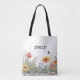 Desenho de pintura em aquarela de Girassóis Rústicos e Flores Silvestres para Saco de Compras com nome personalizado | texto. Um presente perfeito para suas Damas de Honra, como Lembranças de Chá de Noiva, Lembranças de Festa de Despedida de Solteira