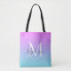 Rapariga Azul Rainbow Star Glitter Monograma Nome Tote Bag. Personalize-o com o seu nome e nome iniciais. Você pode alterar a fonte, o tamanho e a cor.