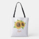Esta bolsa de tote de girassol pode ser personalizada com um nome. Apresenta flores bonito de aquarela. Este saco faz parte da Coleção de Casamentos de Cores de Sol, que inclui uma série de papelaria de casamento e presentes de noiva com esta design. Visite a página de coleta em nossa loja para ver a gama de produtos que você pode personalizar para o seu casamento.