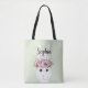 Bolsa Tote Girls Whimsical Flowers Watercolor Rabbit and Name