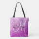 Glitter roxo, feminino e glam ombre, brilha o nome do monograma e o saco de tote inicial. Personalize este saco bonito com o seu nome, monograma ou inicial. Você pode até alterar a cor do texto e o estilo da fonte usando a opção personalizar!