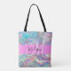 Nome do monograma holográfico iridescente e bolsa inicial de tote. Seu nome personalizado e monograma são escritos em um elegante roteiro escrito à mão com um fundo rosa. Um aniversário perfeito ou presente de Natal!