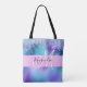 Glam holográfico, a sereia brilha como um nome monograma e um saco de tota inicial. Seu nome personalizado e monograma são escritos em um elegante roteiro escrito à mão com um fundo de rosa claro. Você pode alterar a cor do texto, o estilo e o tamanho da fonte usando a opção personalizar.