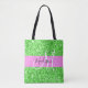 Bolsa Tote Glam Pink and Green Glitter Sparkles Nome do Monog