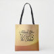 A bolsa de tote de aspas inspiradoras representa um simples fundo com tons de marrom e ouro. Ele apresenta o adorado hino cristão, "Uma graça incrível como o som é doce," cercado por notas musicais e corações.