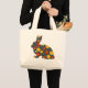Bolsa Tote Grande Coelho retrô com flores laranja e amarelas