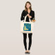 Flores Frangipani © Sunny Mars Designs. Saco de tota, branco, impresso por medida, barato floral grande ou jumbo, comprando, com flores de Plumeria Frangipani amarelas e brancas, contra um fundo azul personalizável. Personalize-o adicionando-lhe um nome ou outro texto ou, em alternativa, poderá eliminar o texto.