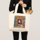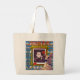 In the original artwork by ZoeSPEAK on this large Tote Bag, Zoe the Bilingual Dog identifies (in English and French) a favorite composer, Georges Bizet. The text reads “I like his opera The Pearl Fishers.”.