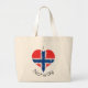Esta design apresenta a bandeira da Noruega num coração, a bandeira parece ter sido pintada na superfície e a tinta está um pouco angustiada ou confusa.