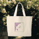 Bolsa Tote Grande Monograma Inicial de Leitura Floral Verde Roxo