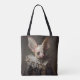 Saco de Compras Grande Morcego em Roupas Barrocas. © Desejos do Coração Sombrio. Uma bolsa de compras gótica com um retrato de um grande morcego vestido com roupas barrocas.