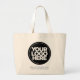 Easily personalize this large navy blue cotton tote bag with your own custom company logo, photo or image, and business name, slogan, website, social network, hashtags or any promotional text. No minimum order quantity and no setup fee. Custom branded tote bags can advertise your business as corporate swag and eco-friendly trade show giveaways. Available in other colors.