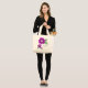 Design de flores roxas em sacos de totebags com personalização faz um presente ideal de madrinha.