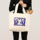 O saco de tote jumbo é mostrado na cor natural com uma impressão de mãe alegre. A cor impressão é azul real. Personalize este saco ou comprar conforme mostrado. Impressão licenciado