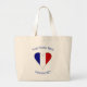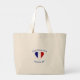 Design na bolsa personalizada de tote grande mostra um coração em forma de funk cheio de bandeira francesa. Acima é um lugar para um nome personalizar. Abaixo, adicione uma ocasião (por exemplo, Dia da Bastilha, aniversário, reunião, etc.) e o ano. Ou, apenas adicione seu próprio texto. A bandeira francesa é azul, branca e vermelha em três faixas verticais. Excelente para fazer reuniões familiares, clubes e grupos viagem. As mães com patrimônio francês apreciá-lo-ão por um Dia de as mães.
