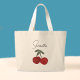 Bolsa Tote Grande Two Red Cherries Illustration | Cute Fruit Art