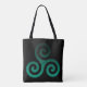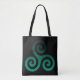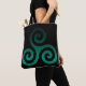 Símbolo verde Triskele. O símbolo Triskele ou Triskelion é constituído por três espirais interpressas ou três braços como se estivesse a sair do seu centro. Esse símbolo celta de movimento ou ação representa os três mundos: celeste, físico e espiritual.